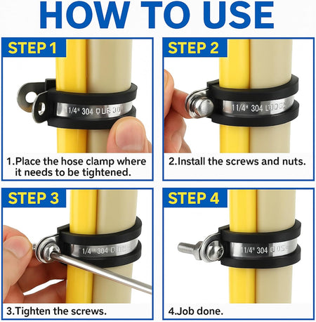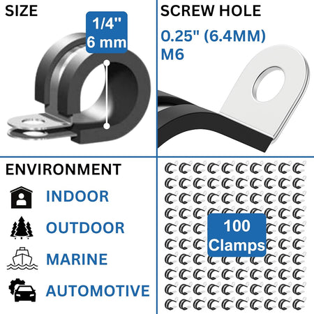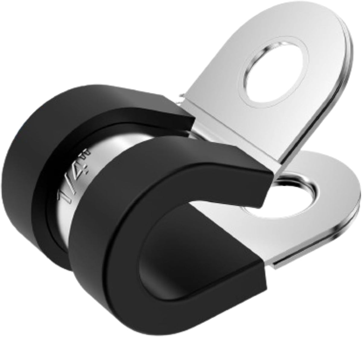 - 1/4" Rubber‑lined 304 SS P‑clamp shields cables & hoses, reduces abrasion & vibration